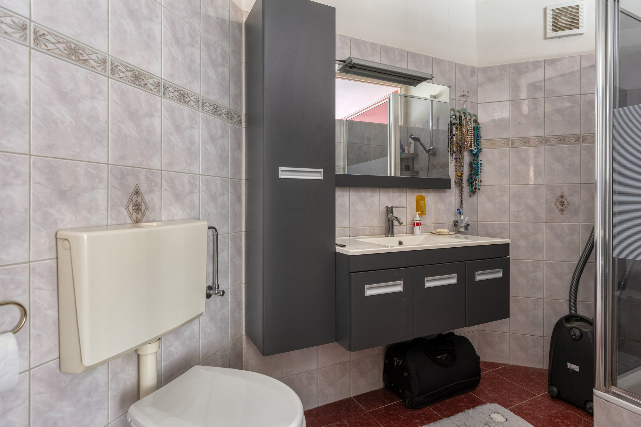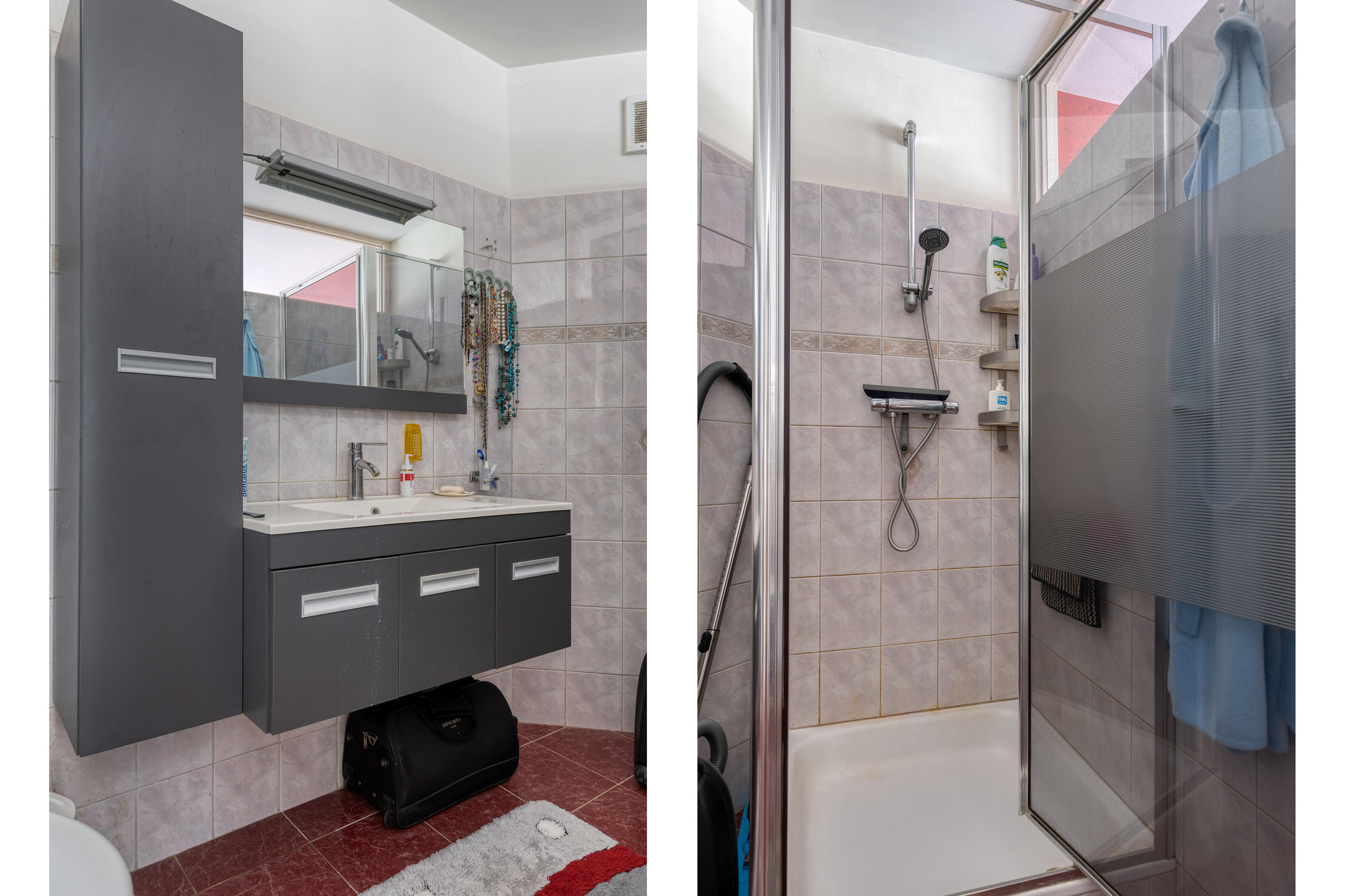 Aan de voorzijde van de woning bevindt zich de ruime slaapkamer met een ensuite badkamer, voorzien van een douche, wastafelmeubel en toilet.