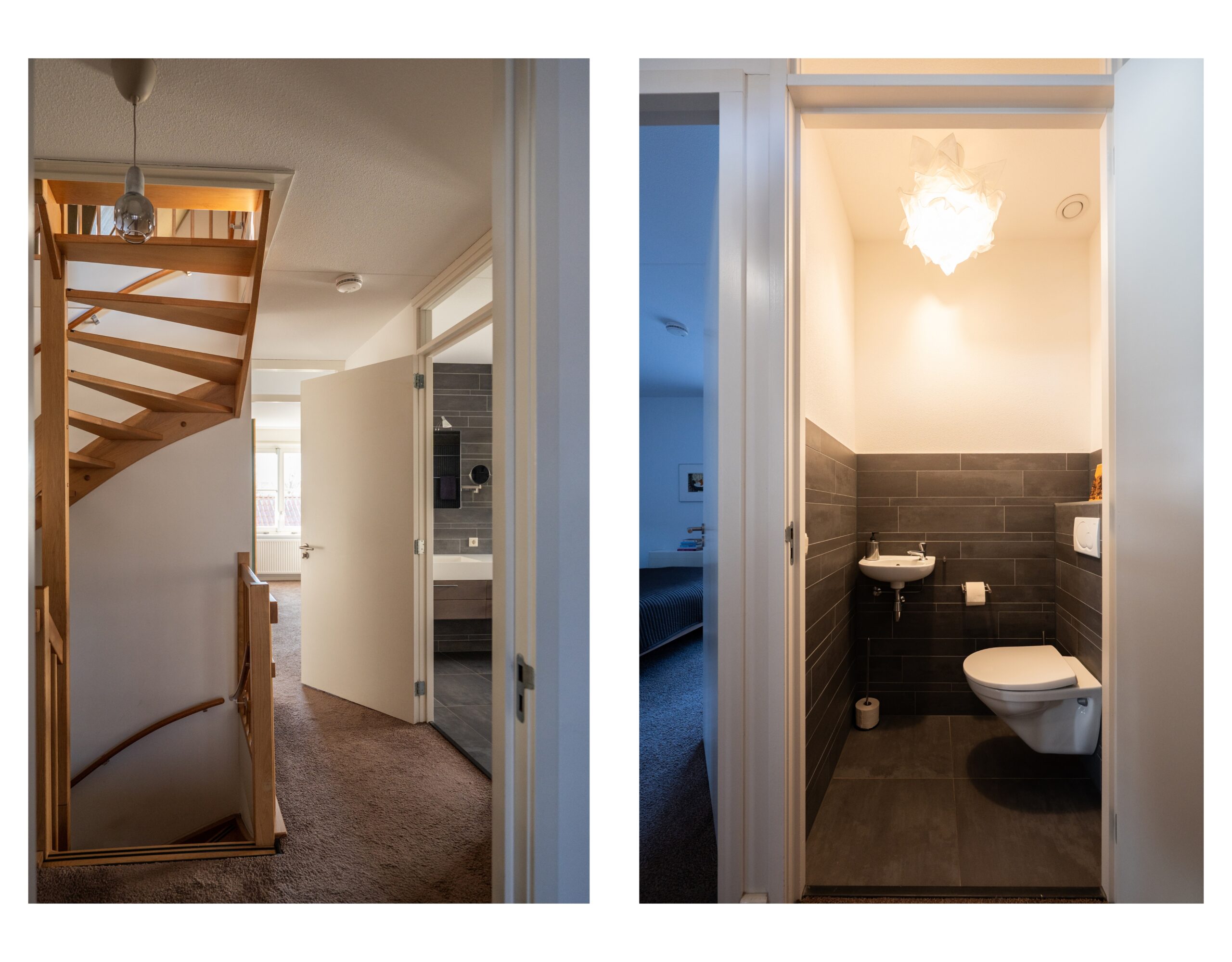 Op deze verdieping bevinden zich tevens een separaat toilet en een complete badkamer. De badkamer is verzorgd uitgevoerd en voorzien van een ruime inloopdouche, een ligbad en een dubbele wastafel met stijlvol meubel, dat zorgt voor optimaal comfort en gebruiksgemak voor het hele gezin.