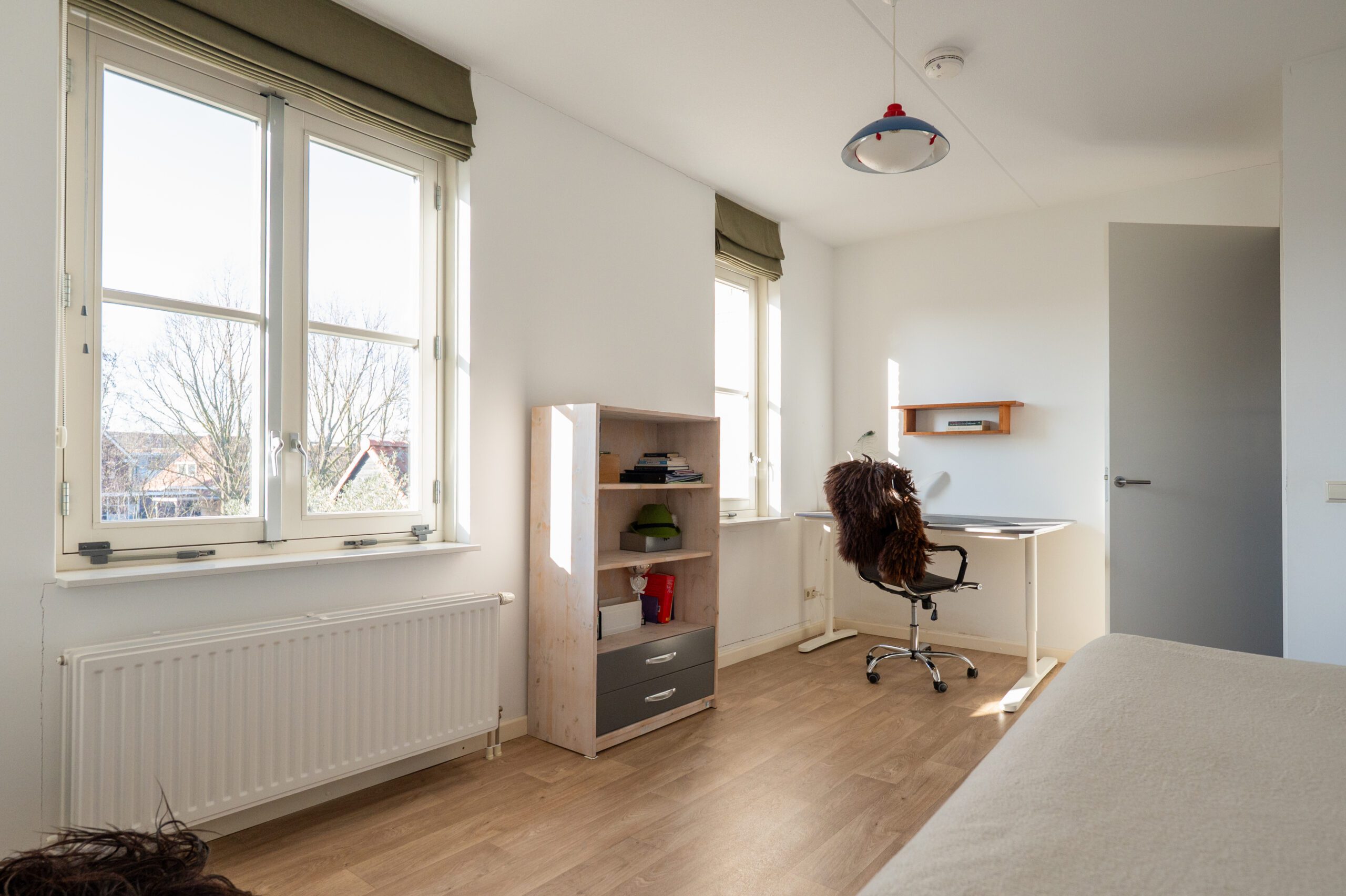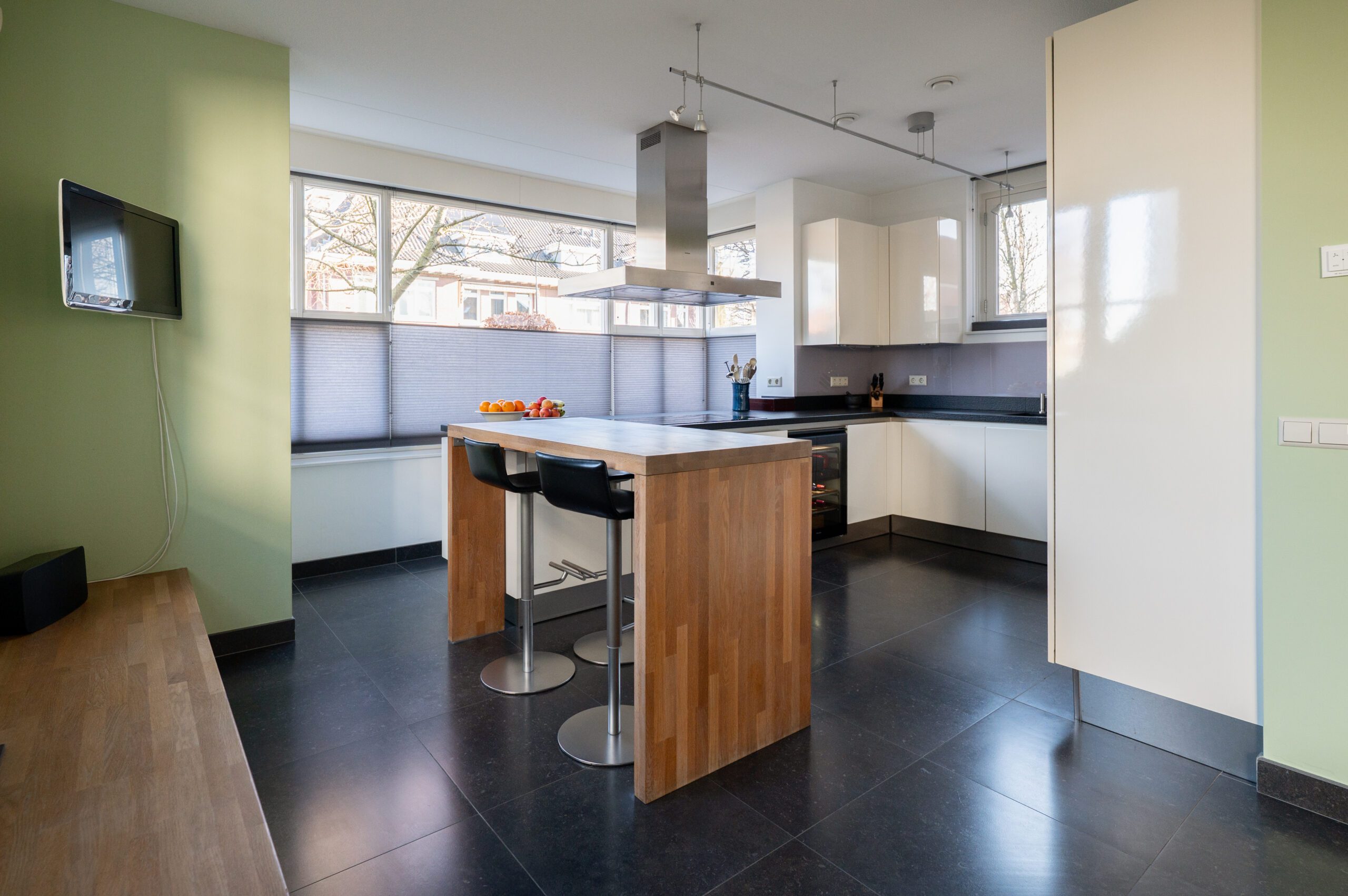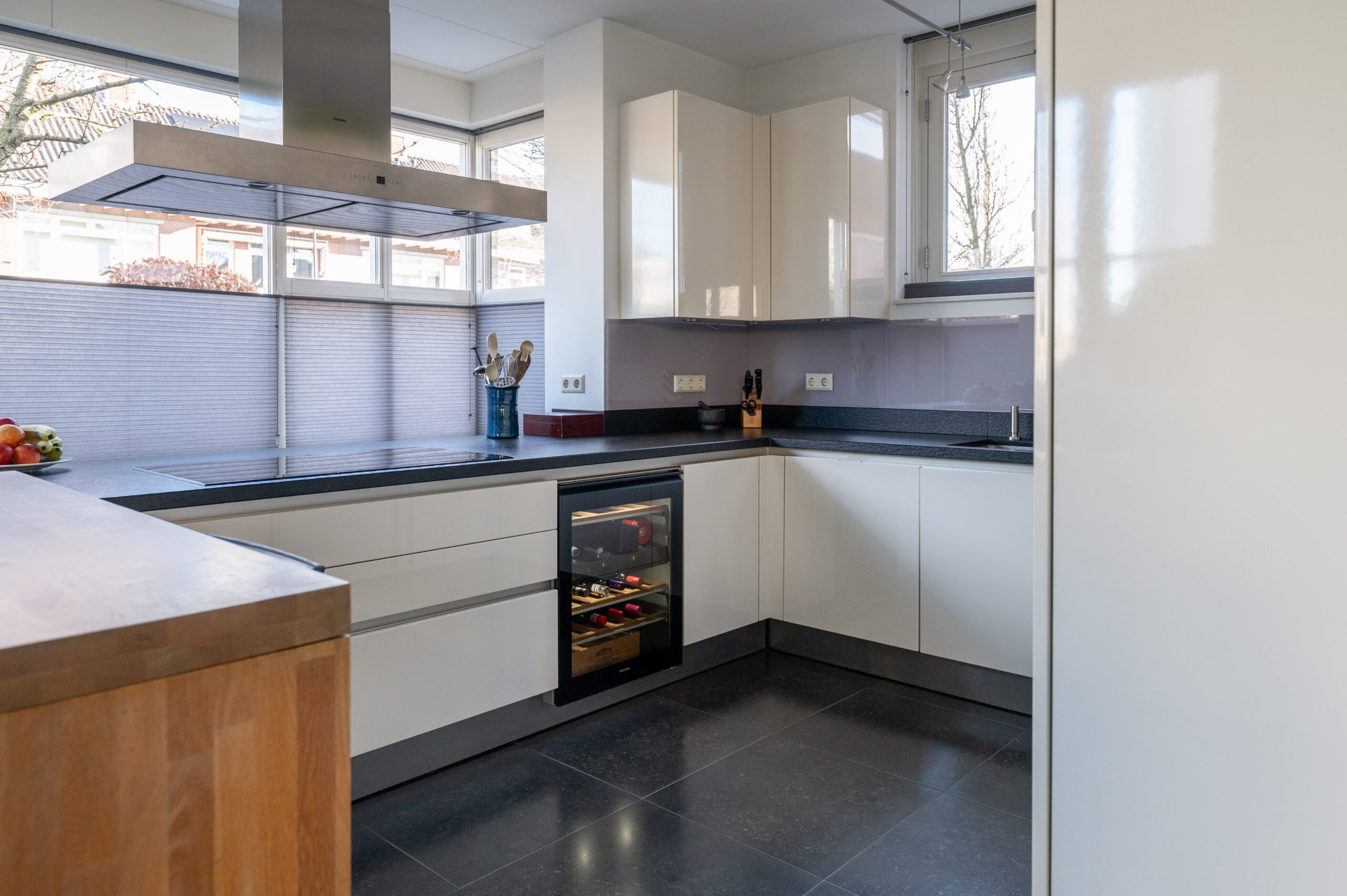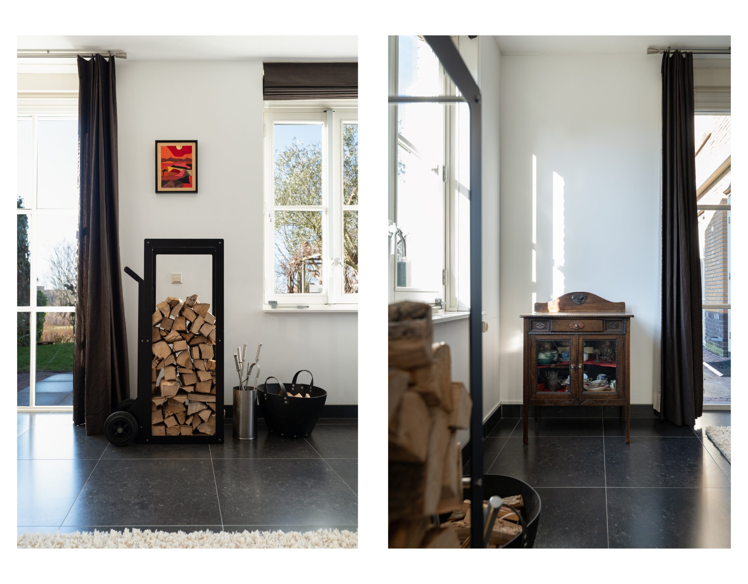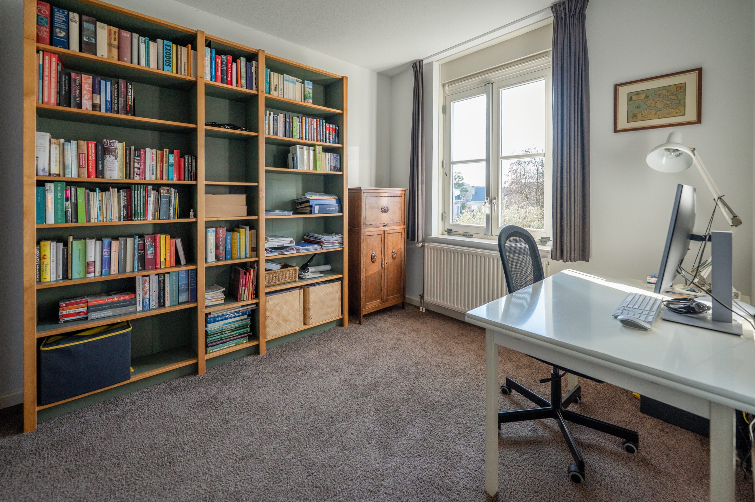 Aan de voorzijde van de woning bevindt zich de levendige, compleet uitgeruste keuken, voorzien van alle benodigde inbouwapparatuur. Aansluitend vindt u de ruime eethoek, ideaal gesitueerd tussen keuken en living, waardoor een open en uitnodigende leefruimte ontstaat. De aangrenzende woonkamer vormt een sfeervolle plek om te ontspannen, met een uniek ontworpen open haard met aan beide zijden een aangebouwd meubel als warm middelpunt. Dankzij de klassieke houten raamroedes geniet de gehele begane grond van een prachtige natuurlijke lichtinval dat zorgt voor een gezellige ambiance.