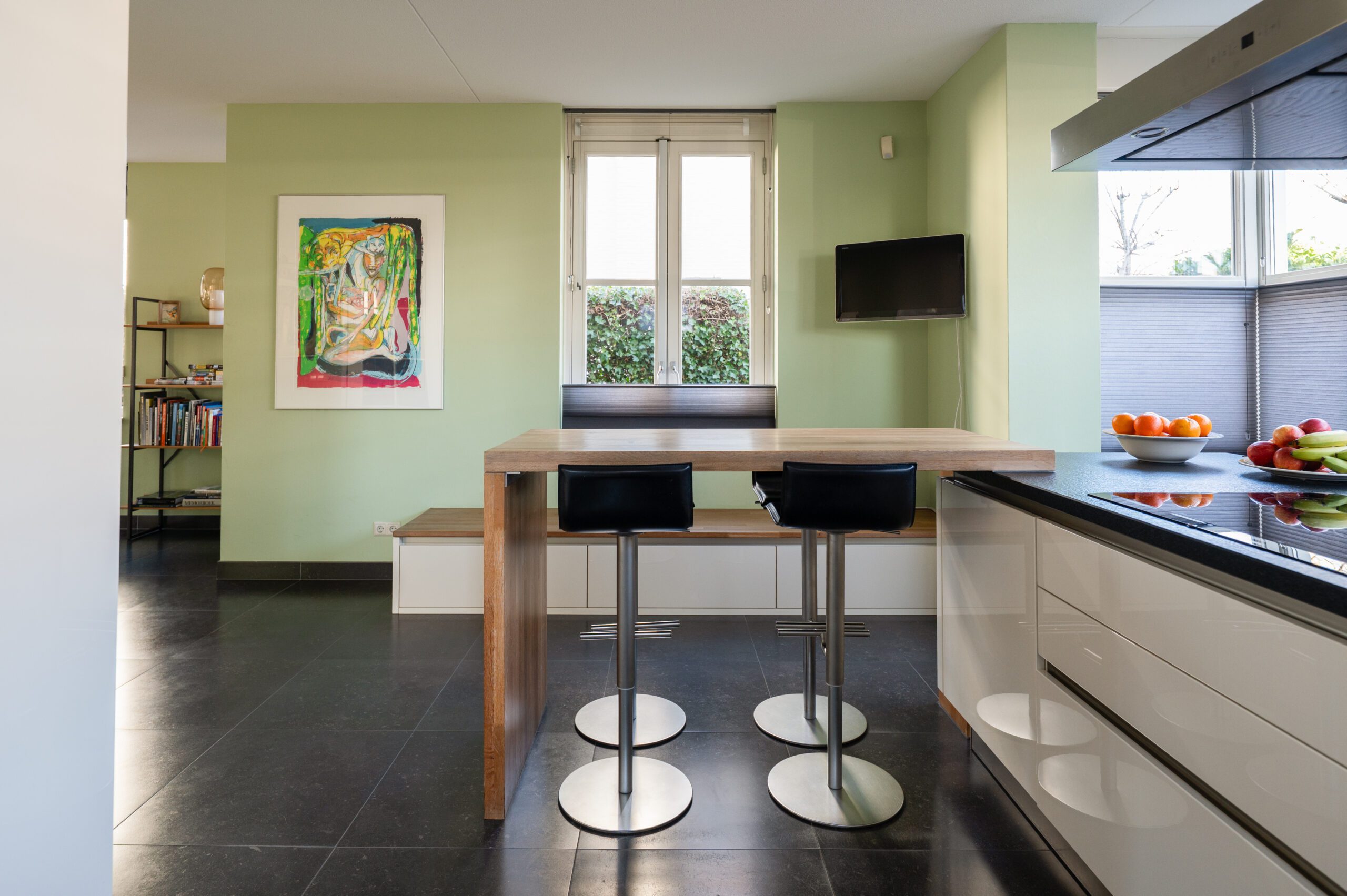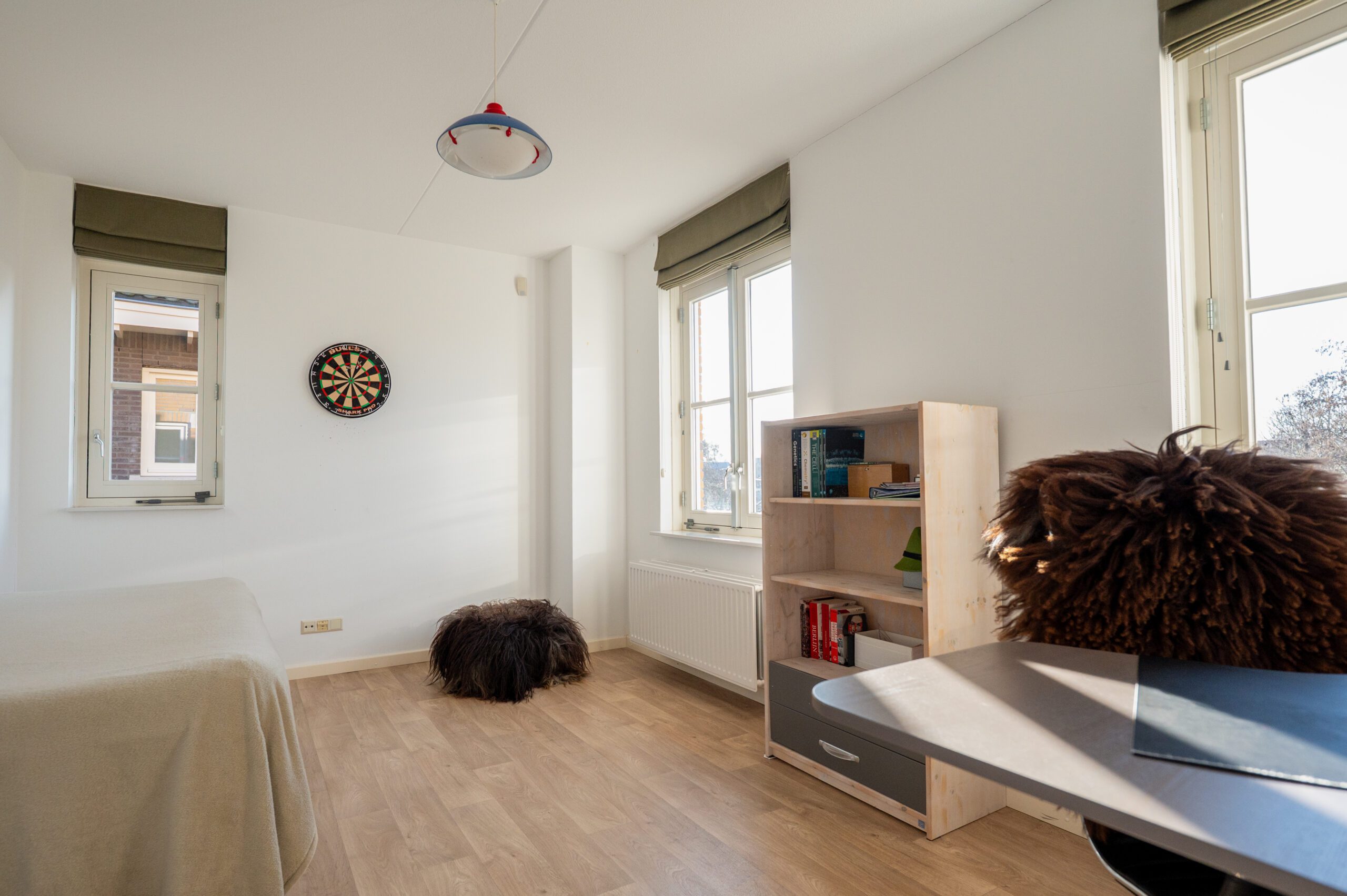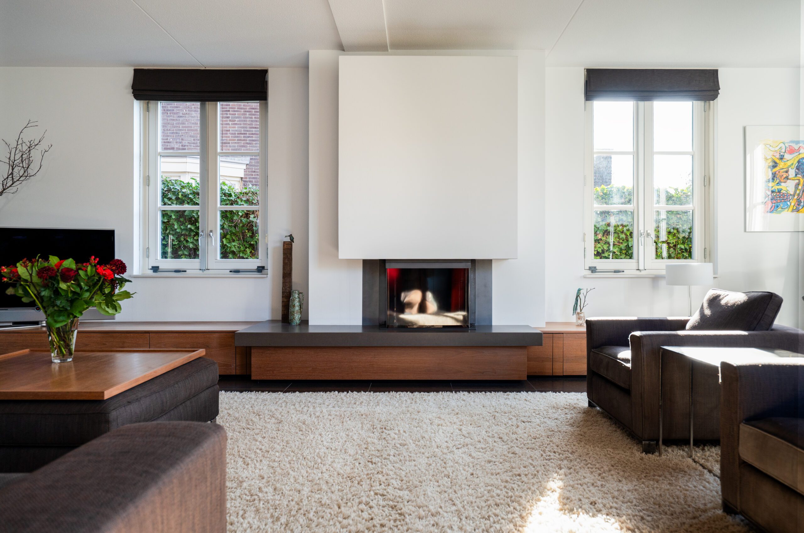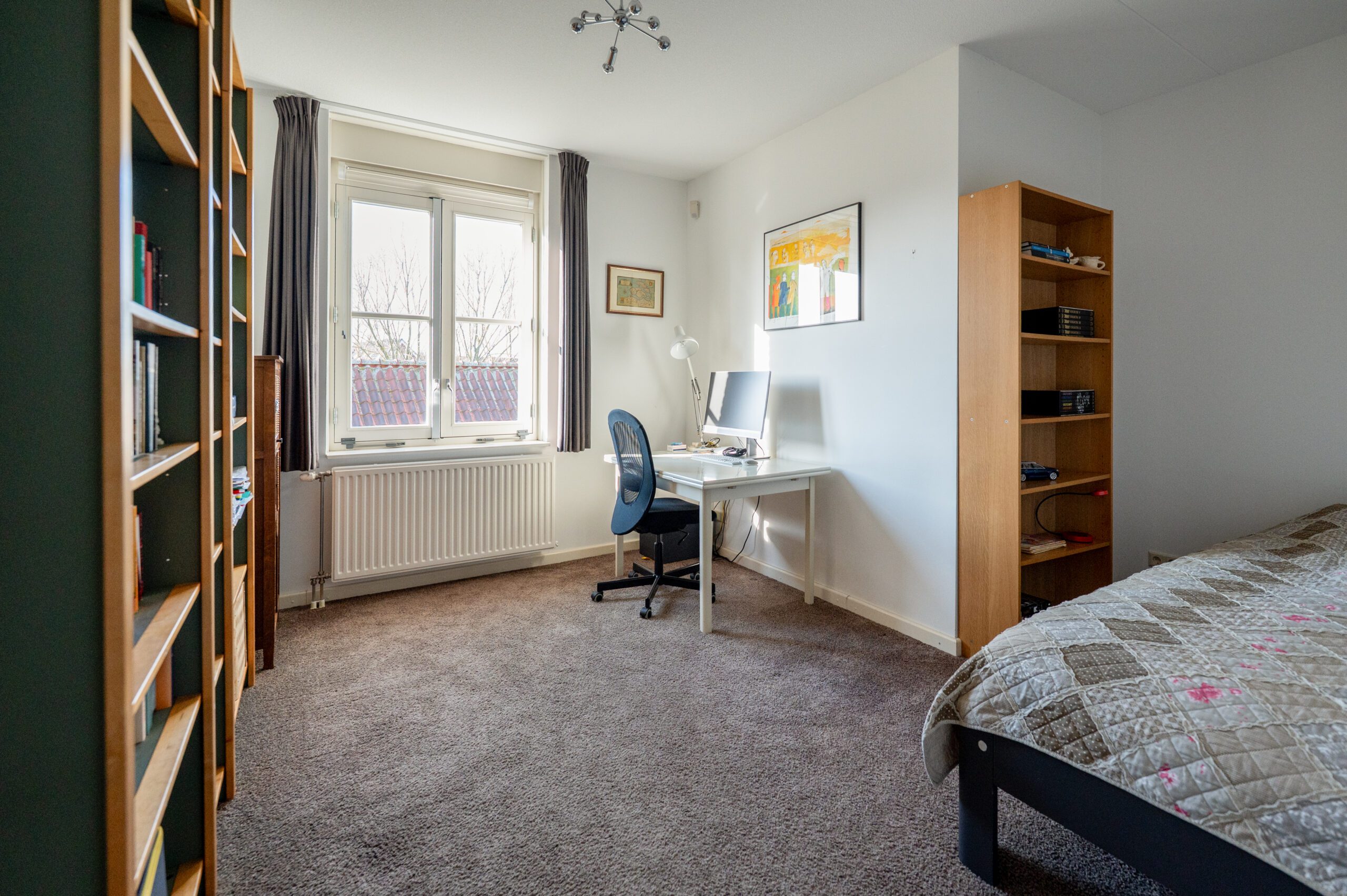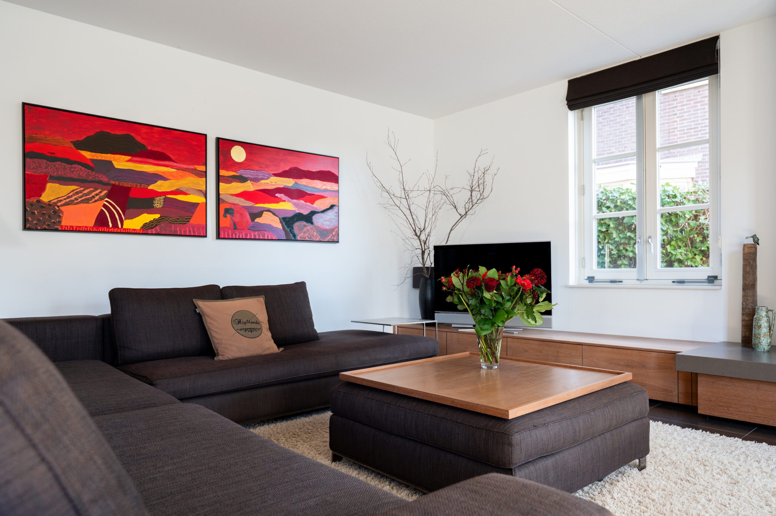 Aan de voorzijde van de woning bevindt zich de levendige, compleet uitgeruste keuken, voorzien van alle benodigde inbouwapparatuur. Aansluitend vindt u de ruime eethoek, ideaal gesitueerd tussen keuken en living, waardoor een open en uitnodigende leefruimte ontstaat. De aangrenzende woonkamer vormt een sfeervolle plek om te ontspannen, met een uniek ontworpen open haard met aan beide zijden een aangebouwd meubel als warm middelpunt. Dankzij de klassieke houten raamroedes geniet de gehele begane grond van een prachtige natuurlijke lichtinval dat zorgt voor een gezellige ambiance.