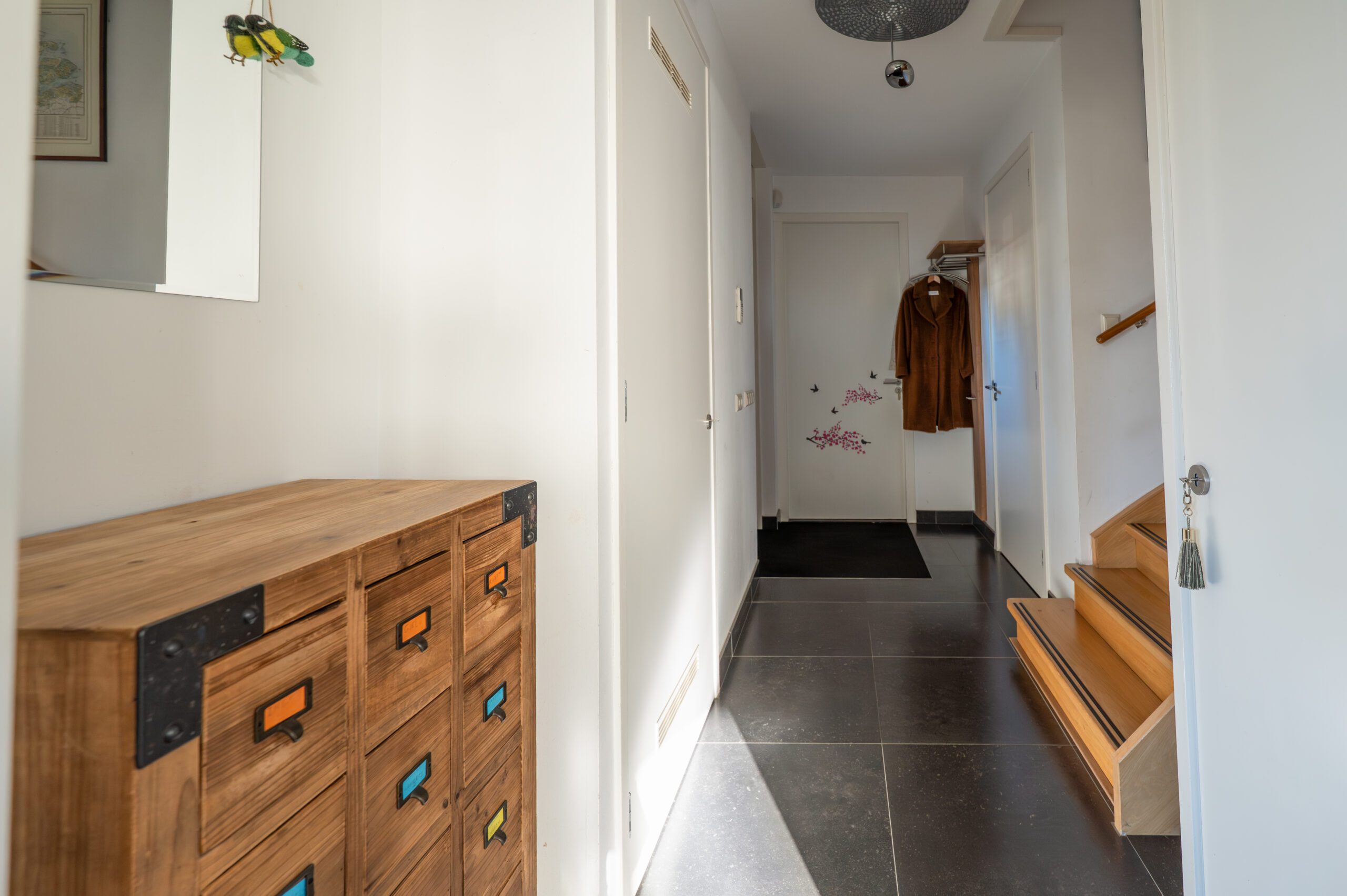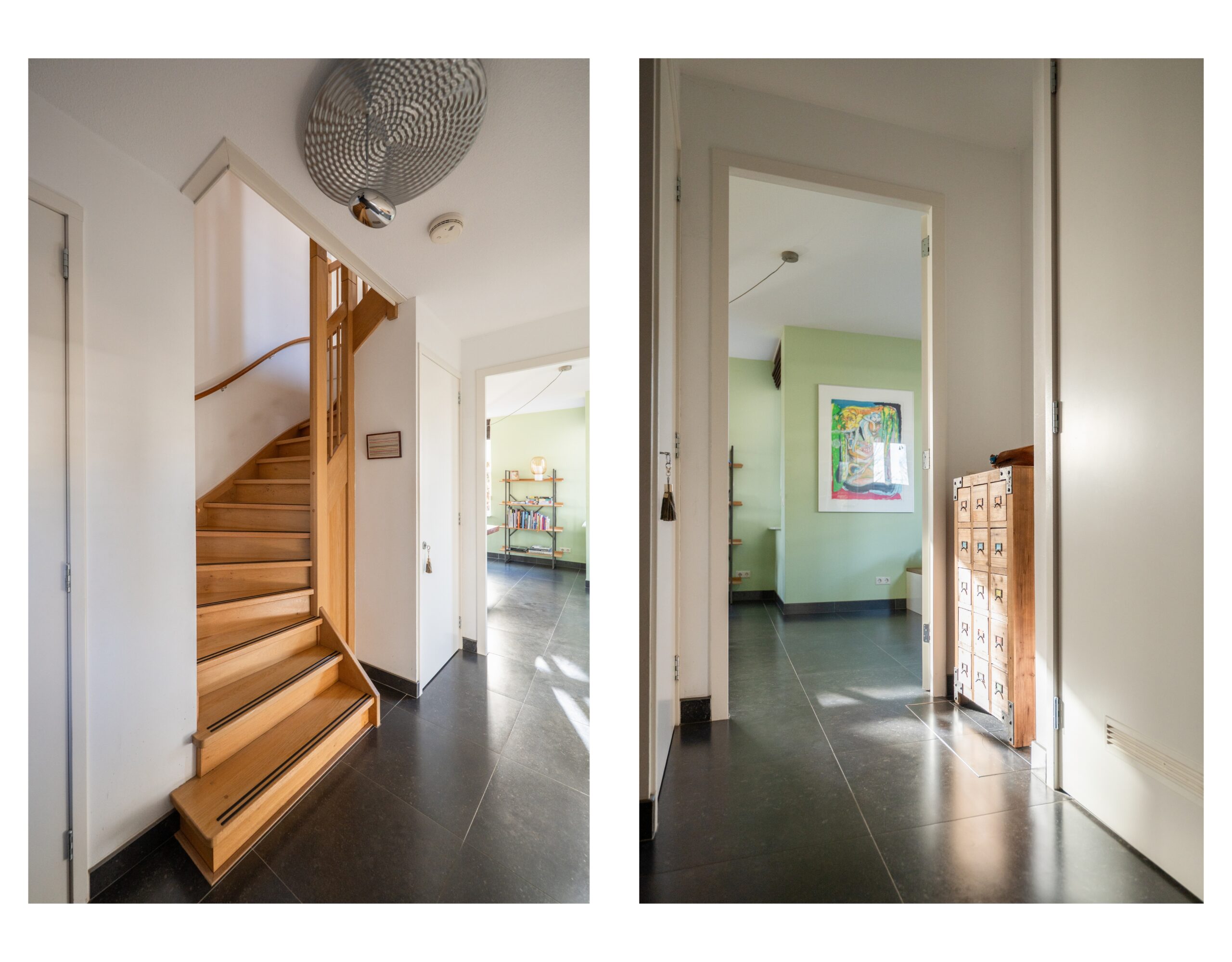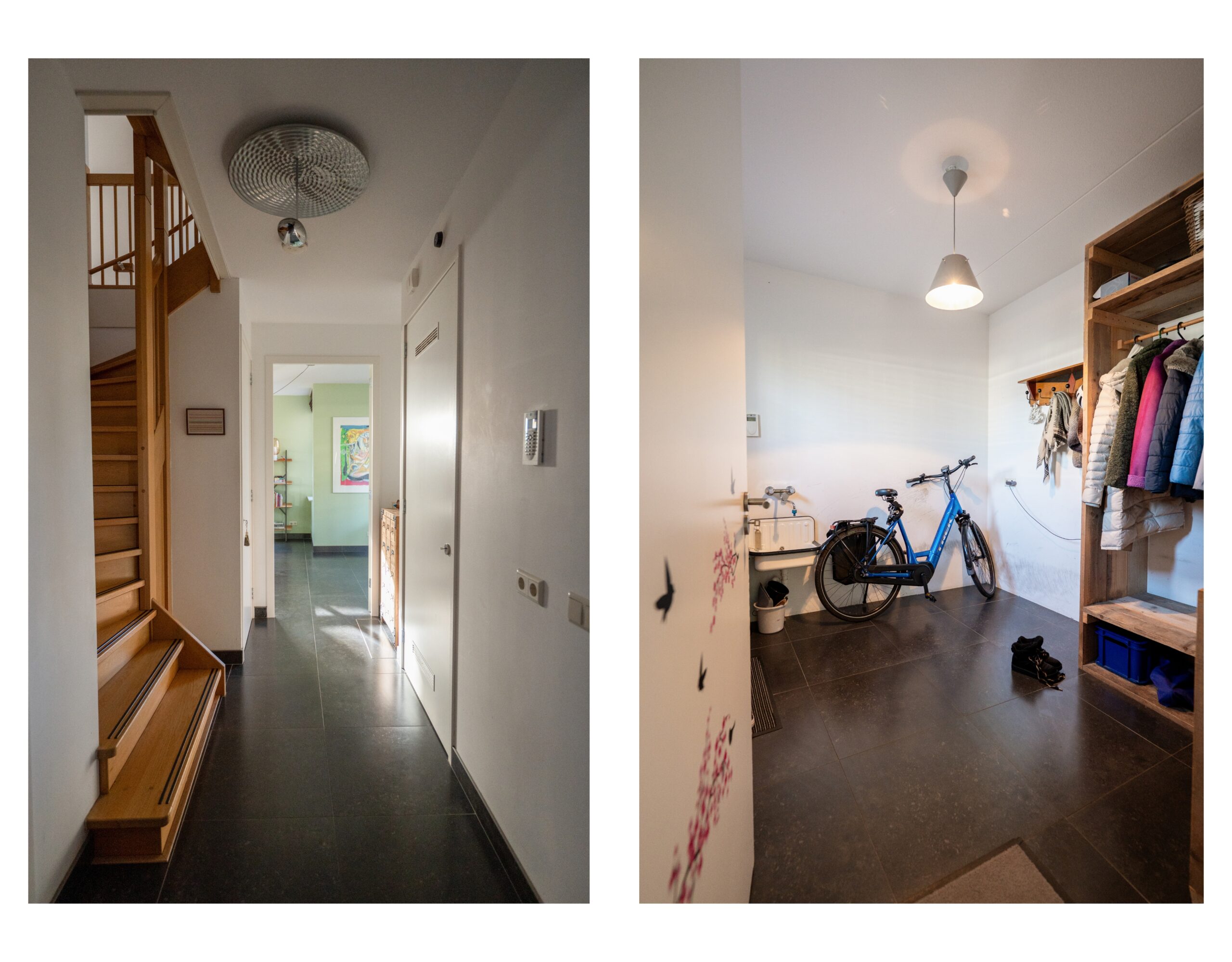 Bij binnenkomst wordt u verwelkomd in een ruime entree die direct de sfeer en kwaliteit van de woning benadrukt. De gehele begane grond is voorzien van een stijlvolle stenen vloer met comfortabele vloerverwarming, voor een aangenaam wooncomfort. Vanuit de hal bereikt u het moderne toilet en een royale praktische berging met volop ruimte voor fietsen en extra opslag.