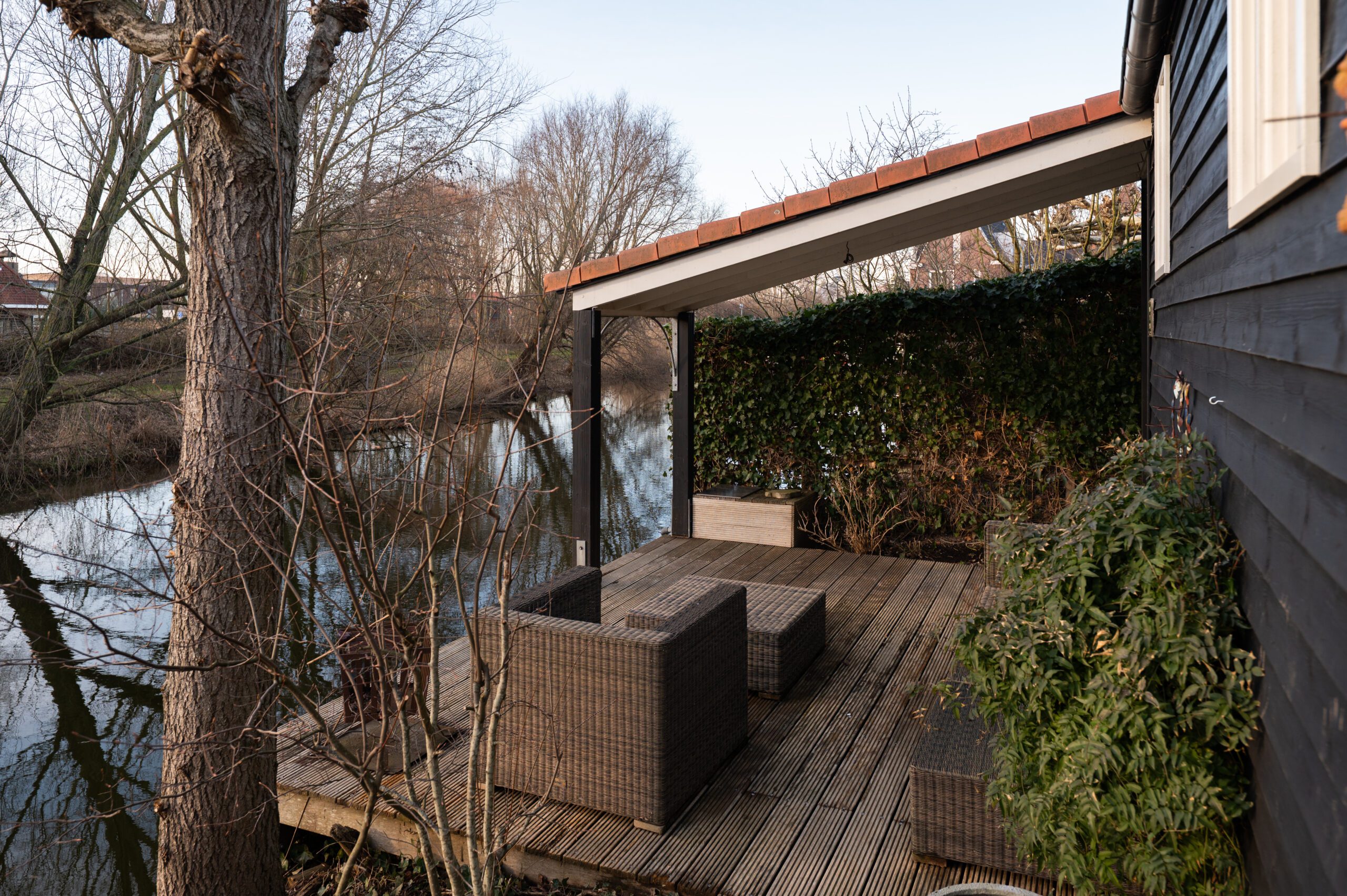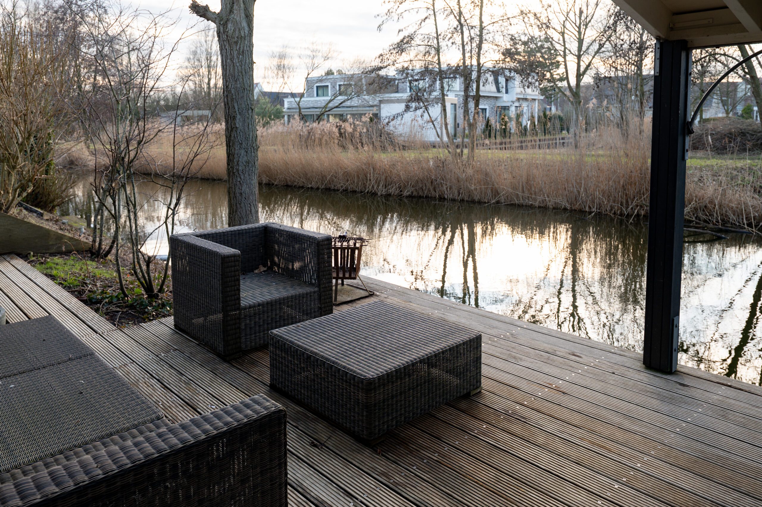 De woning beschikt over een prachtige, rondom gelegen tuin die volop ruimte biedt voor ontspanning, spel en samenzijn. Een fraai tuinhuis (36m2) is verdeeld in een gezellig zitverblijf en een berging voor opslag en tuinmaterialen. Een derde verrassing vormt de sfeervolle vlonder aan het water, waar u heerlijk kunt zitten en genieten van de rust en het vrije uitzicht over het water en de achterliggende ecologische groene zone.